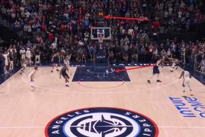 GIF-快船最后一防 小卡疑似防守三秒違例了