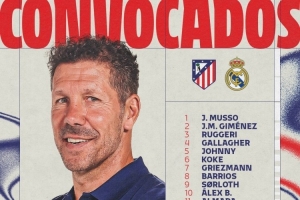 體育資訊1月6日訊 北京時間1月9日凌晨,馬競將在西超杯半決賽中對陣皇馬,馬競公布了西超杯名單。