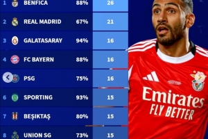1.本菲卡 26個點球 命中率88%