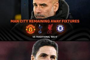阿森納和曼城均剩下9個英超客場,在這其中,曼城還要前往四支英超“BIG6”的客場,分別是曼聯、熱刺、利物浦和切爾西。