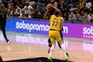 GIF-奎因反擊撞倒東契奇,裁判吹2+1,湖人挑戰成功改判進攻犯規