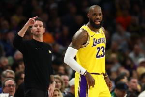 賽后,湖人主帥雷迪克接受了記者采訪。他打趣道:“有時候勒布朗會叫我滾開(Fu** off ),然后他自己叫戰術。”