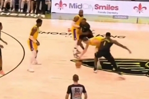 GIF-錫安防守打到東契奇私密部位 后者略顯難受