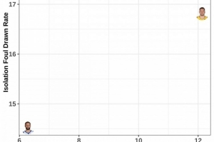 橫坐標:帶球造犯規率。庫里約6%,亞歷山大約9%,東契奇約12%