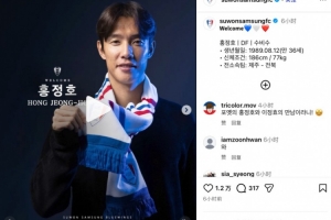 體育資訊1月7日訊 K聯(lián)賽球隊水原FC官方宣布,36歲前韓國國腳洪正好自由身加盟球隊。