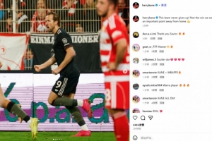 凱恩也在賽后通過社媒曬出自己進(jìn)球后的慶祝照,并配文:“這支球隊(duì)永不放棄!沒拿到我們想要的勝利,但從客場(chǎng)帶走重要一分??”。