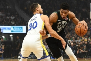 生涯至今,庫里和字母哥交手16次,戰績11勝5負占據優勢。