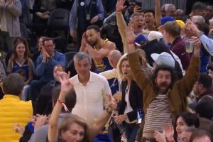 GIF-庫里連續撤步 三分轟進 但好像踩線了!殺死比賽!