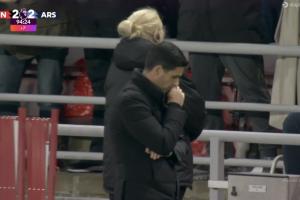 體育資訊11月9日訊?阿森納本輪2-2戰平桑德蘭,補時桑德蘭絕平,場邊鏡頭給到了阿爾特塔。