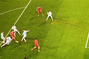 基米希任意球似傳似射,于帕頭球入網(wǎng)!拜仁扳回一城,3-5巴黎!