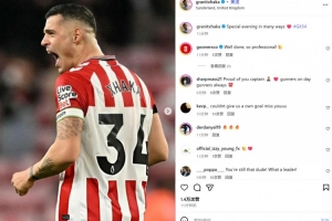 他本場比賽完成7次解圍,也在賽后通過社媒曬出自己的怒吼慶祝照,并配文:“各方面而言都是特別的一夜 ??”。
