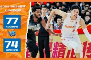 2025-2026賽季CBA常規賽第十二輪今晚打響,福建晉江文旅男籃客場挑戰吉林長白山恩都里男籃,雙方上演跌宕起伏的對決。主隊在上半場建立兩位數領先優勢,第三節頂住對手反撲保住領先,卻在末節遭遇逆轉,關鍵時刻的連續失誤葬送好局,最終福建晉江文旅男籃以74-77憾負對手。四節比分分別是:16-16,27-17,18-24,13-20(福建晉江文旅男籃在前)。