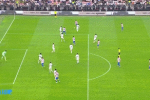 比賽全場補(bǔ)時(shí)最后階段,馬競前場進(jìn)攻,阿爾馬達(dá)挑傳,阿爾瓦雷斯近距離的射門偏出遠(yuǎn)端立柱。