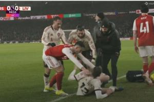 體育資訊01月09日訊 英超第21輪阿森納0-0利物浦,第93分鐘,布拉德利解圍后受傷倒地,馬丁內利想將其推出邊線,雙方爆發沖突,馬丁內利、科納特染黃。布拉德利隨后被擔架抬離。