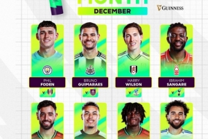 體育資訊1月9日訊 英超官方公布了12月最佳進球獲選名單,福登、B費、多爾古的進球在列。