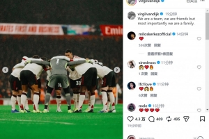 利物浦隊長范戴克社媒曬出比賽照片,配文:“我們是團隊,是朋友,但最重要的是,我們是一家人?!?/p>