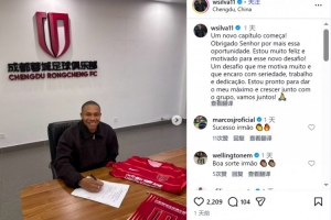 體育資訊1月9日訊 成都蓉城簽下前海牛外援韋林頓·席爾瓦,球員更新社媒談到自己的感受。
