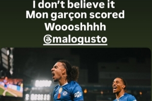 他的隊友科爾維爾也通過社媒曬照調(diào)侃:“我不相信!我的男孩進球了,嗖!@古斯托”。