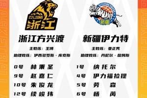 新疆男籃為納托爾、伊福、勞森、楊芮、吳冠希、馮傲、李炎哲、曲笑宇、阿不都、艾孜麥提、葛浩然、哈里斯。