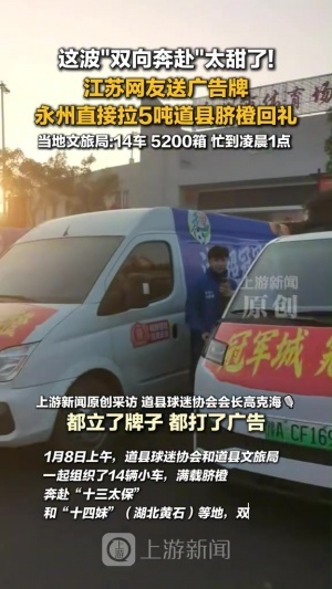 這波“雙向奔赴”太甜了!江蘇網友送廣告牌,永州直接拉5噸道縣臍橙回禮,當地文旅局:14車,5200箱,忙到凌晨1點。