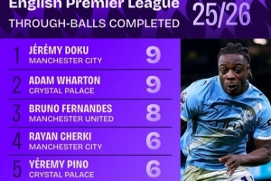 本賽季英超成功直塞榜: