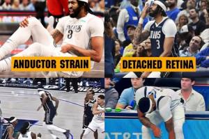 濃眉自被湖人交易至獨(dú)行俠后至今僅為獨(dú)行俠出戰(zhàn)了29場比賽,在這29場比賽內(nèi),他已遭遇了6處不同的傷病,分別是(按時(shí)間順序):內(nèi)收肌拉傷、視網(wǎng)膜脫離、小腿挫傷、跟腱酸痛、腹股溝拉傷、左手韌帶損傷。