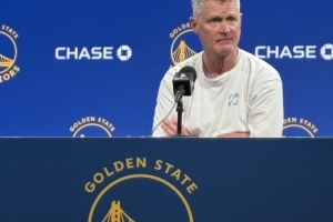 科爾:說實話,我為他(的處境)感到失望(I’m disappointed for him that),因為事情并沒有像前幾周那樣繼續發展下去。與此同時,一開始本來就會很棘手。JK、吉米(巴特勒)、德雷蒙德(追夢),你知道的,打二號位、三號位和四號位。我想,任何人都能看出來,這是一個很難搭配的組合,單從五人陣容的投射能力來看就是如此。有時候,斯蒂芬(庫里)可以憑一己之力彌補所有空間問題,他就是這么出色。但在現代 NBA里,我認為這樣做會非常困難,而我們也意識到了這一點。我們確實給了那套陣容幾周時間,但最終,我認為那套陣容的弱點暴露出來了,這也是為什么我們選擇了不同的方向。