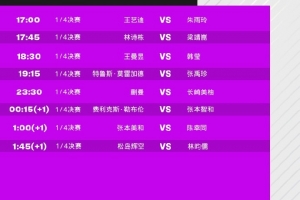 體育資訊1月10日訊 2026WTT多哈冠軍賽進入1/4決賽較量,以下是今日具體對陣。
