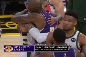 這是湖人本賽季第14次經歷關鍵時刻(最后5分鐘分差5分以內)的比賽,此前他們13場全勝,今天不敗金身被破。