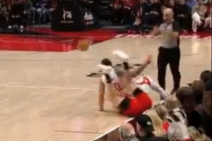 GIF-第二節楊瀚森和亞當斯的一次拼搶中兩人都倒地