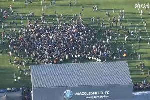 賽后第一時間麥克爾斯菲爾德球迷涌入場內,瘋狂慶祝。