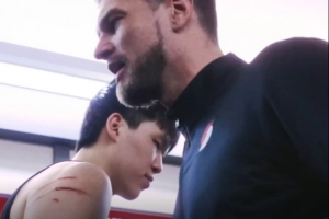 賽后更衣室內(nèi),球隊(duì)臨時主帥斯普利特滿臉笑容,里斯獲得球隊(duì)本場最佳防守球員,與斯普利特?fù)肀r,楊瀚森的手臂抓傷清晰可見。