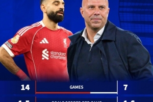 本賽季,薩拉赫共代表利物浦踢了14場英超比賽,球隊場均進球數(shù)和丟球數(shù)均為1.5,場均積分為1.57分。在薩拉赫所缺陣的7場比賽里,利物浦場均打進1.6球,場均丟球數(shù)下降至1,場均積分上漲至1.86分。