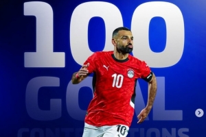 數據統計顯示,薩拉赫達成埃及國家隊直接參與100球里程碑,共計出戰111場貢獻65球35助攻。