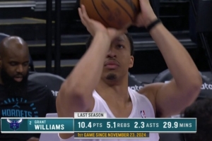 黃蜂VS爵士,轉播方曬圖,黃蜂球員格蘭特-威廉姆斯今天復出上演賽季首秀。