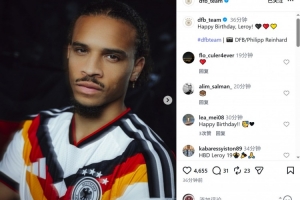 體育資訊1月11日訊 今天是德國邊鋒薩內的30歲生日,德國隊官方為他慶生。