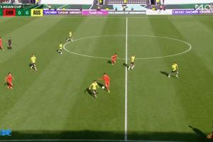 阮奇龍爭搶球權(quán)時飛踹到雷森德腹部,主裁判向阮奇龍出示黃牌