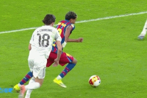 體育資訊01月12日訊 西班牙超級(jí)杯決賽,巴薩對(duì)陣皇馬。44分鐘,亞馬爾連過數(shù)人送出直塞,萊萬射門被擋。