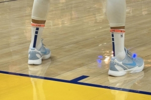 庫(kù)里今天上腳科比6戰(zhàn)靴,配色為WNBA球星凱特琳·克拉克專屬。
