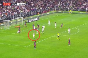 西班牙超級杯決賽,巴薩3-2擊敗皇馬奪冠。比賽的最后時刻居萊爾策動進攻,把球傳入禁區之后,皇馬得到一個絕平機會,但是卡雷拉斯錯失絕平。隨后居萊爾掀衣發泄+怒踹草坪。
