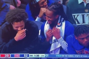 體育資訊1月12日訊 昨日活塞主場92-98不敵快船,比賽中出現有趣一幕。