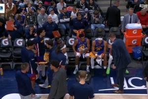 GIF-約基奇西裝革履聲情并茂指點掘金替補席 皮克特頻頻點頭
