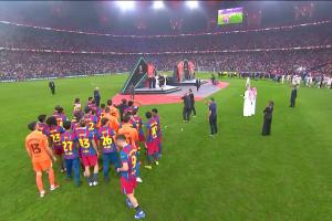 有點懵!冠軍巴薩上臺領獎時無人列隊,巴薩球員齊齊望向皇馬球員