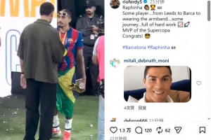 費迪南德參與了這場比賽的解說工作,他在社交媒體上曬出賽后與拉菲尼亞交流的視頻,并配文:“拉菲尼亞,真是個了不起的球員,從利茲聯到巴薩,再到如今戴上隊長袖標,這是一段充滿汗水和努力的旅程 ???? 西超杯MVP! 恭喜!”