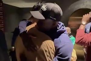 見到老隊(duì)友王楚的馬內(nèi)非常興奮,不斷熱情擁抱。馬內(nèi)還和王楚的妻子開了個(gè)小玩笑:你不會(huì)法語(yǔ)嗎?
