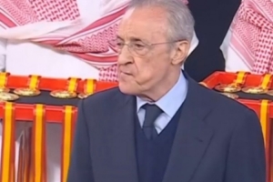 在昨天的西超杯決賽,巴薩3-2擊敗皇馬奪冠。而在賽后現場頒獎、頒發獎牌時,弗洛倫蒂諾的表情有些失落。