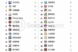 騰訊憑借旗下《王者榮耀》、《和平精英》和《PUBG MOBILE》等王牌手游的穩定表現,蟬聯全球手游發行商收入榜冠軍。