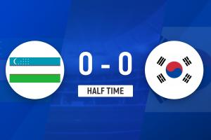 半場(chǎng)戰(zhàn)罷,韓國(guó)U23隊(duì)0-0烏茲別克斯坦U23隊(duì)。
