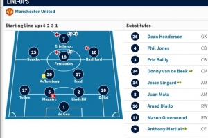 替補席則是:迪恩·亨德森、菲爾·瓊斯、拜利、范德貝克、林加德、馬塔、阿瑪德、格林伍德、馬夏爾。