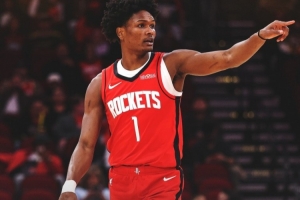 賽后,火箭官方發布贏球海報,阿門·湯普森成為封面人物。